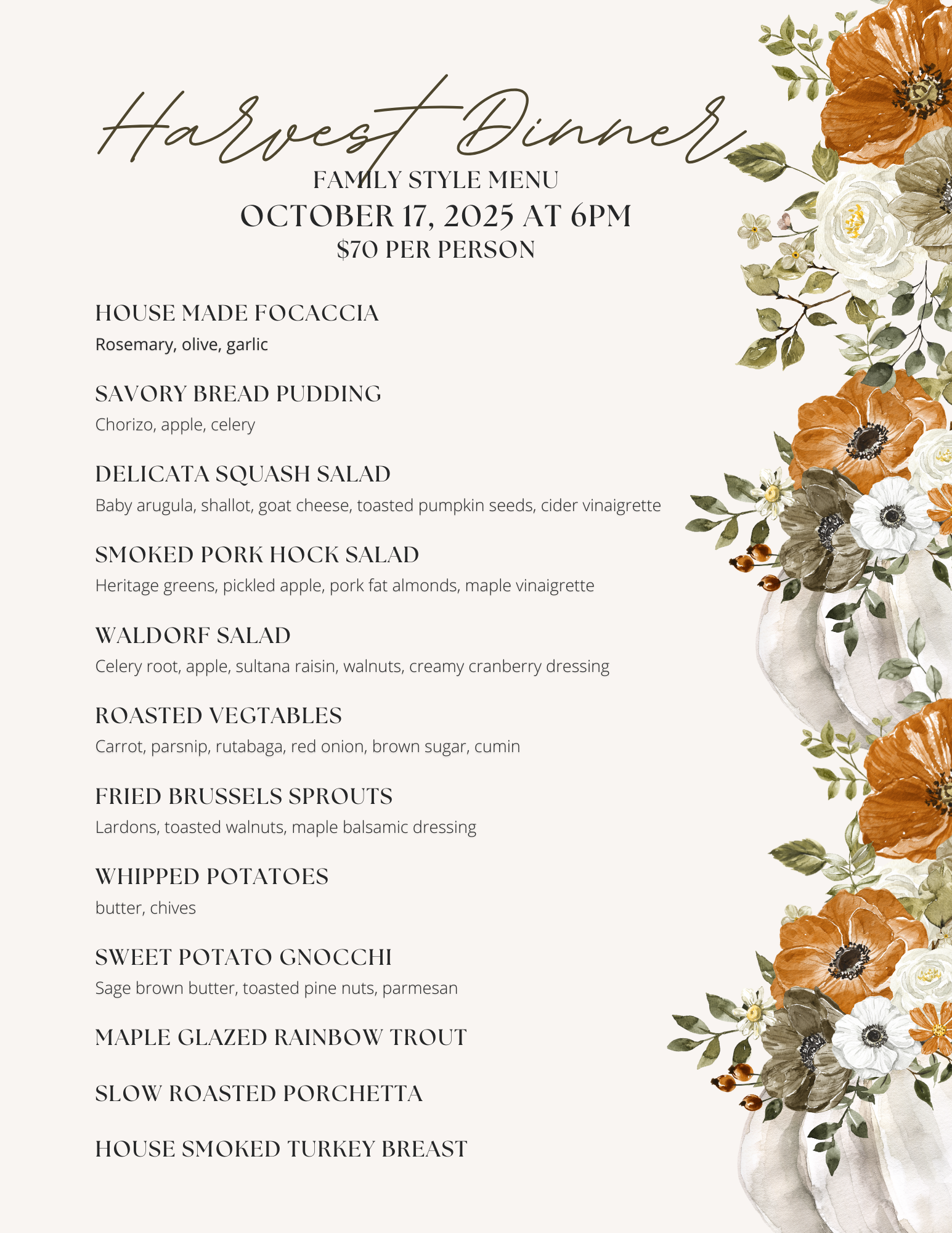 Join us at The Windsor Club for our first annual Harvest Dinner, a celebration of autumn’s bounty. Enjoy a thoughtfully crafted menu featuring seasonal favorites like roasted root vegetables, sweet potato gnocchi, slow-roasted porchetta, and maple-glazed rainbow trout. Complemented by fresh salads and house-made breads, this dinner promises a warm, flavorful experience that brings the harvest to your plate. Gather with friends and fellow members for an evening of exquisite tastes and seasonal delight.